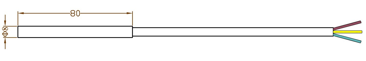 傳感器引線端由三條線組成,分別是棕色線代表電源(VCC),黃色線代表數(shù)據(jù)(DATA),藍(lán)色線代表地(GND)。